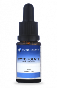 200 mcg of 5-methyltetrahydrofolate and 20 mcg of methylcobalamin per liquid drop in a natural blueberry flavour.
